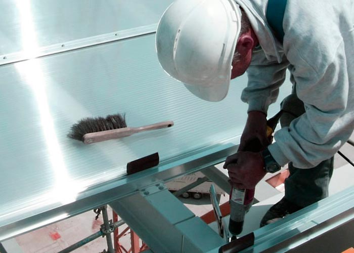 Instalación de Cubiertas de Policarbonato Alveolar en Estructura de Aluminio